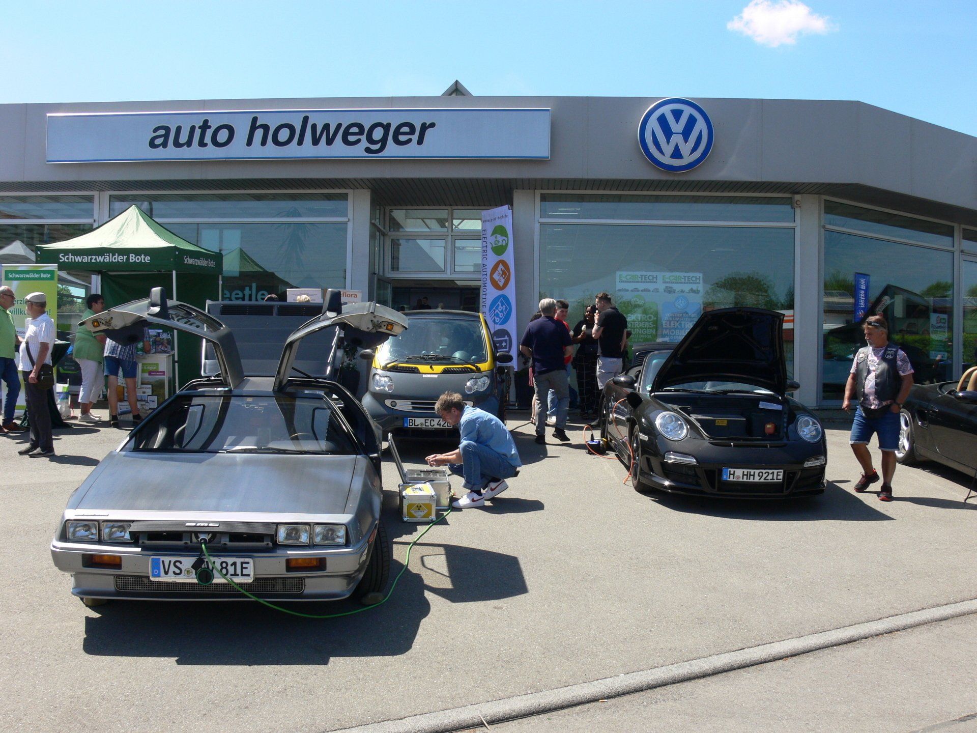 mitgebracht, den wir gemeinsam auf E-Antrieb umgerüstet haben. Neben diesen beiden Publikumsmagneten haben wir den Besuchern unseren E-Smart, E-Porsche