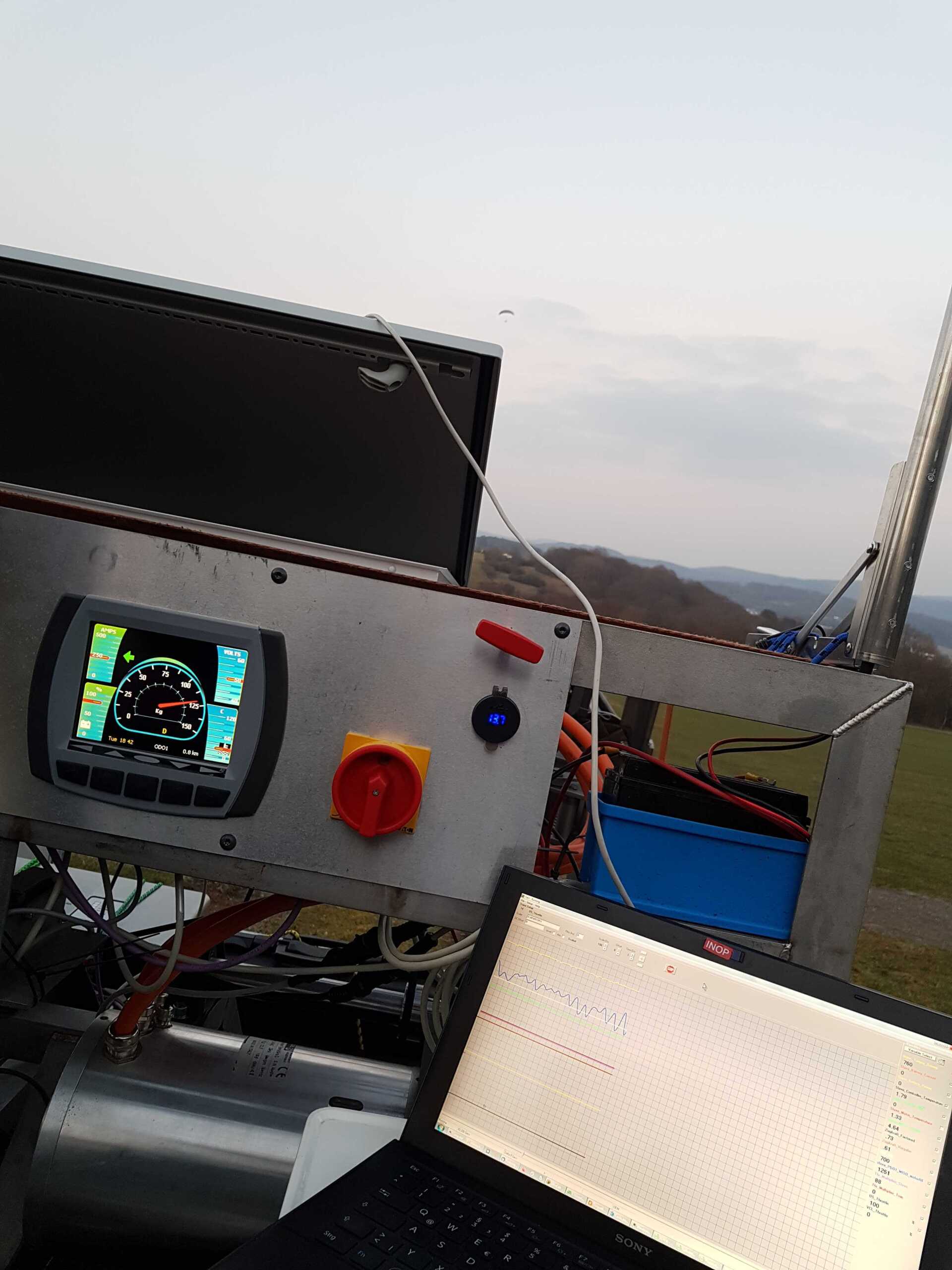 Besonderer Knackpunkt bei dem Projekt der Akku-Elektrowinde lag auf der Programmierung der Regel-Software für den Schleppvorgang. Hier ist absolute Genauigkeit gefragt, damit bei jedem Wetter, auch bei windigen und böigen Verhältnissen jeder Pilot sicher in die Luft kommt! Mehrmals pro Sekunde misst die von E-Car-Tech erstellte Software die aktuelle Zugkraft, vergleicht dies mit dem voreingestellten Wert, und regelt die Winde automatisch nach. Somit kommt es unabhängig von den äußeren Bedingungen immer zu einem sanften, ausgeglichenen Schlepp, und es werden große Ausklinkhöhen erreicht. Jegliches Aufschaukeln, egal ob durch Thermik oder absichtlich herausgefordert, wird wirkungsvoll gedämpft.