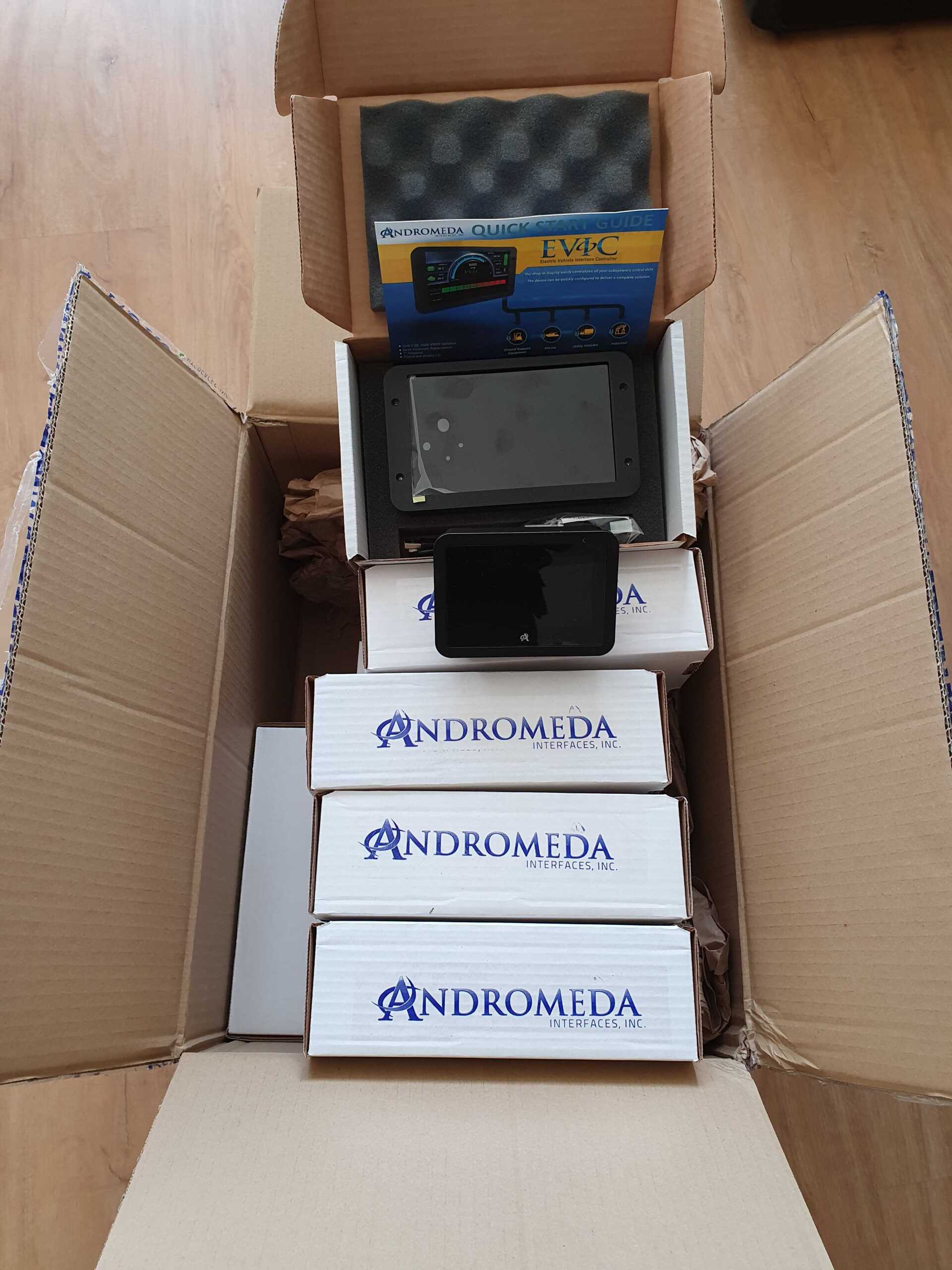 Von unserem Lieferanten Andromeda Interfaces Inc. aus Kalifornien gab es letzte Woche eine neue Lieferung HMI-Displays. Unsere Kollegen in der Werkstatt haben uns tolle Unboxing-Fotos vom EVIC Display zur Verfügung gestellt!